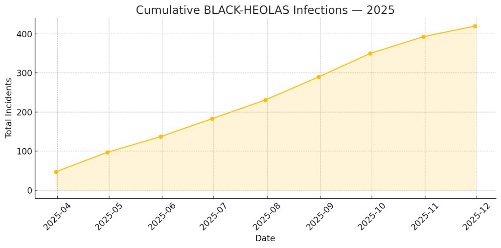 BLACK-HEOLAS is a stark reminder of how lower-tier ransomware crews have evolved into organized extortion operations. Though the ransom is relatively small, the damage — encrypted assets, stolen data, psychological pressure, and operational downtime — can be severe. The only reliable recovery path is careful containment, forensic analysis, and restoration from safe backups. Paying the ransom rarely solves the problem and often invites additional extortion or long-term exposure. A modern defense strategy must include hardened email filtering, immutable backups, employee training, and system patching to stay ahead of ransomware families like BLACK-HEOLAS.
