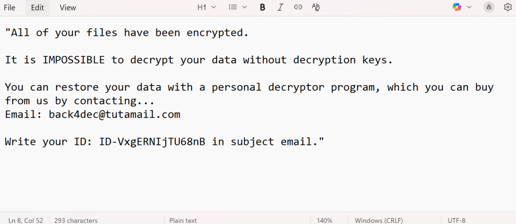 - Current Status: Active but under investigation. Unknown if this is a brand-new family or a rebranded/modded variant of an existing ransomware.