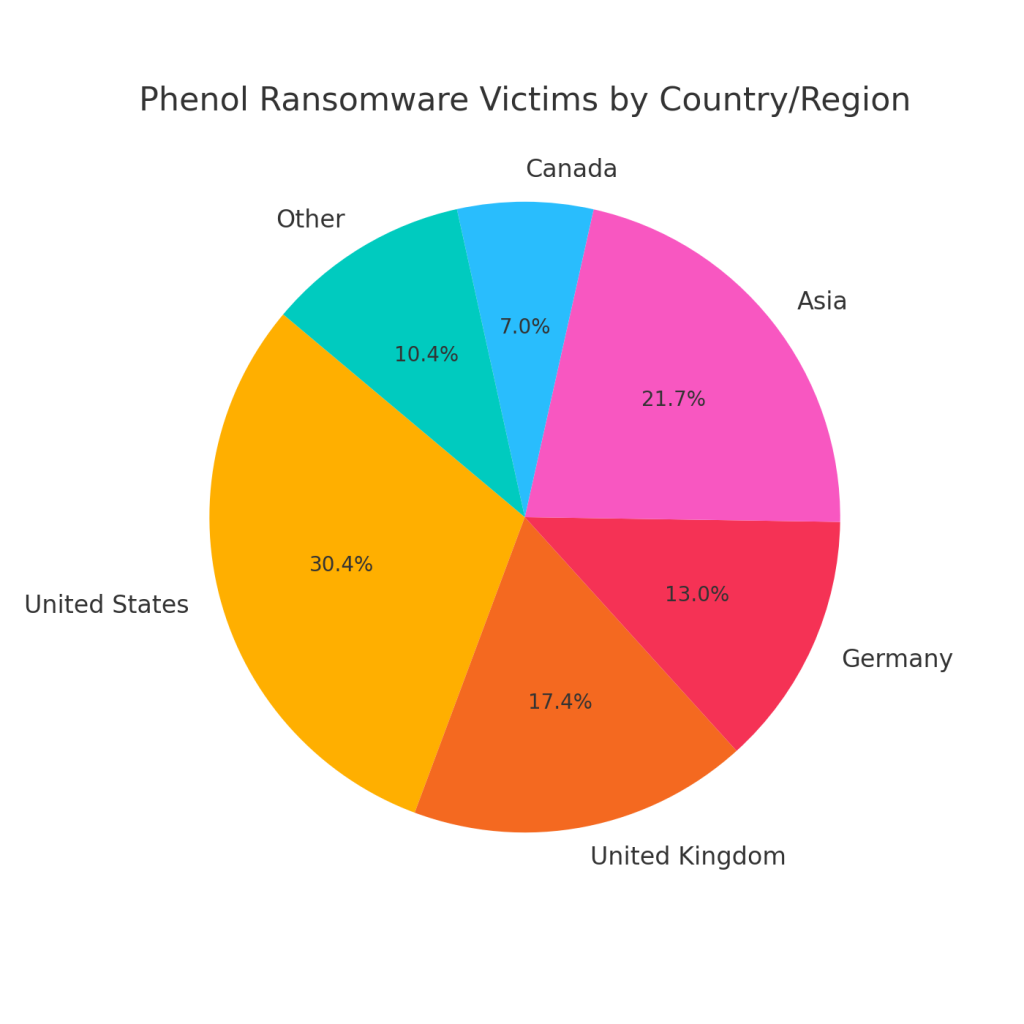 Phenol has targeted a mix of businesses and individual users, with early reports linking it to campaigns in North America, Europe, and parts of Asia. Its double-extortion model makes it attractive for targeting both small enterprises and larger institutions.